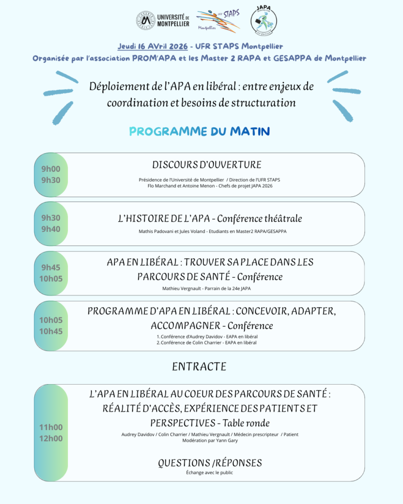 Colin Charrier est l’un des intervenants de la 24ᵉ édition de la Journée des Activités Physiques Adaptées (JAPA) de Montpellier.